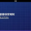 「指定設備の認定・帳簿・事故届」の内容から出題するミニテスト第1回(全5問)です。指定設備の認定で免除される検査・帳簿の記載義務・事故届の届出先・届出のタイミングなど基本事項を出題しています。