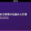 「水力発電の仕組みと計算」のミニテスト第2回(全5問)です。