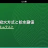 「給水方式と給水設備」の内容から出題するミニテスト第2回(全5問)です。直結直圧方式・高置水槽の弱点・受水槽の設置基準・圧力タンク方式・給水方式の分類を確認しましょう。