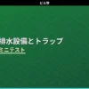 通気設備と排水槽」の内容から出題するミニテスト第1回(全5問)です。通気管の役割・伸頂通気・ループ通気・各個通気・排水槽の清掃頻度をチェックしましょう。