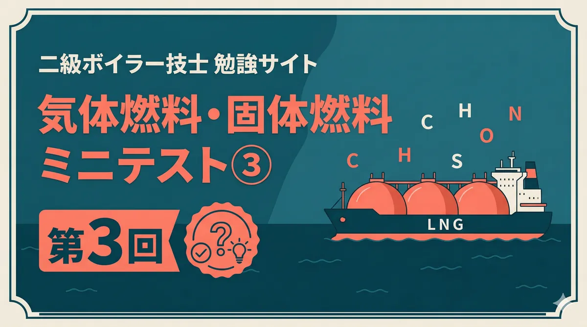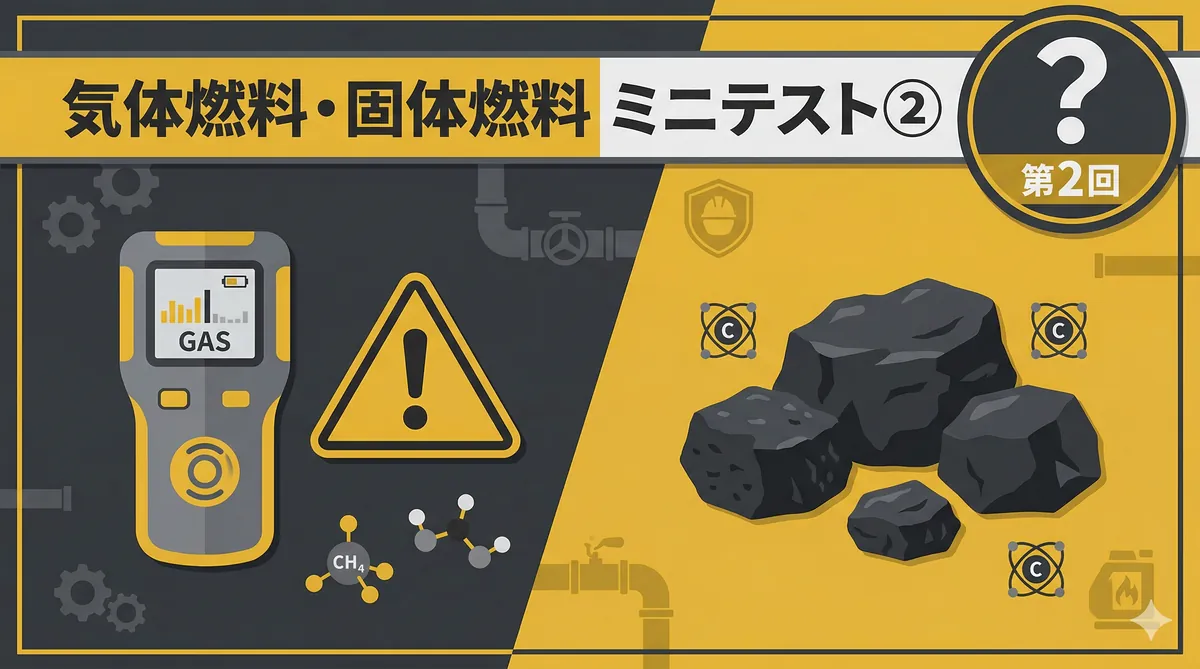 「気体燃料・固体燃料の種類と性質(都市ガス・LPG・石炭)」の内容から出題するミニテスト第3回(全5問)です。天然ガスの環境面のメリット・LNGの特徴・元素分析の項目・3種類の燃料比較・供給圧力の管理など第1回・第2回で出題していない範囲を中心に出題しています。 気体燃料・固体燃料の種類と性質 ミニテスト 第1回 第2回 第3回 テストの使い方 まず自分で答えを考えてから「解答を見る」をタップしてください。間違えた問題は解説記事に戻って確認すると効果的です。 第1問 天然ガスが環境にやさしいとされる理由と ...