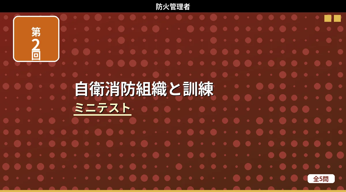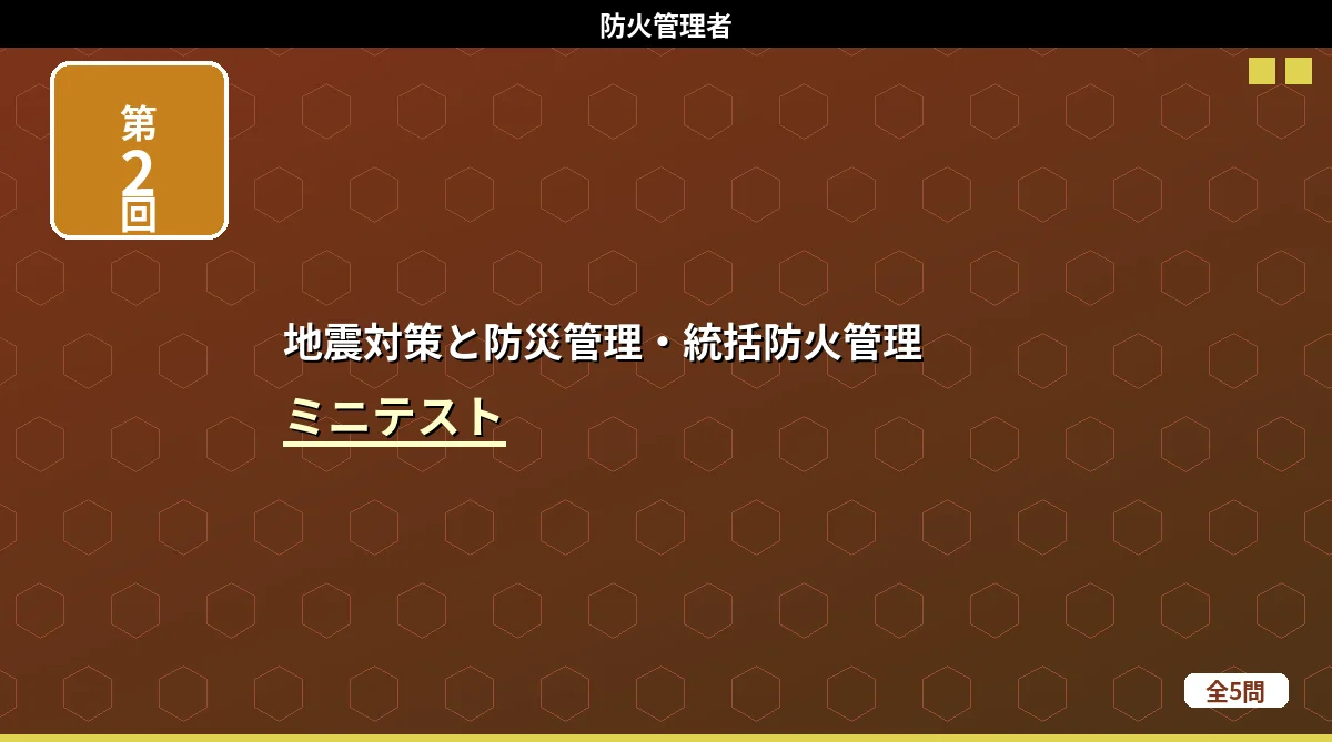 「地震対策と防災管理・統括防火管理」の内容から出題するミニテスト第2回(全5問)です。 地震対策と防災管理・統括防火管理 ミニテスト第1回 第2回 第3回 テストの使い方 まず自分で答えを考えてから「解答を見る」をタップしてください。間違えた問題は解説記事に戻って確認すると効果的です。 第1問 感震ブレーカーの役割として、正しいものはどれか。 (1)地震を事前に予知する (2)地震の揺れで自動的に電気を遮断する (3)地震後にガスの元栓を閉める (4)地震時に非常灯を点灯させる (5)地震の震度を計測する ...