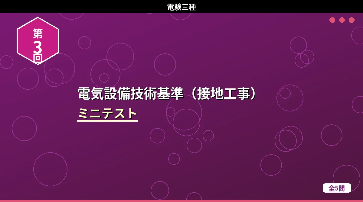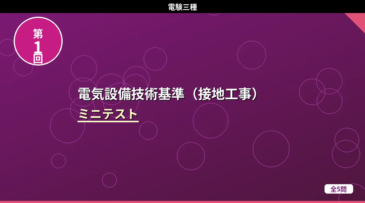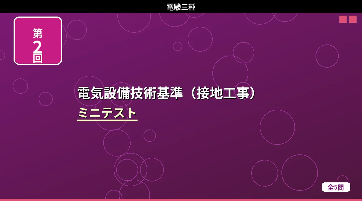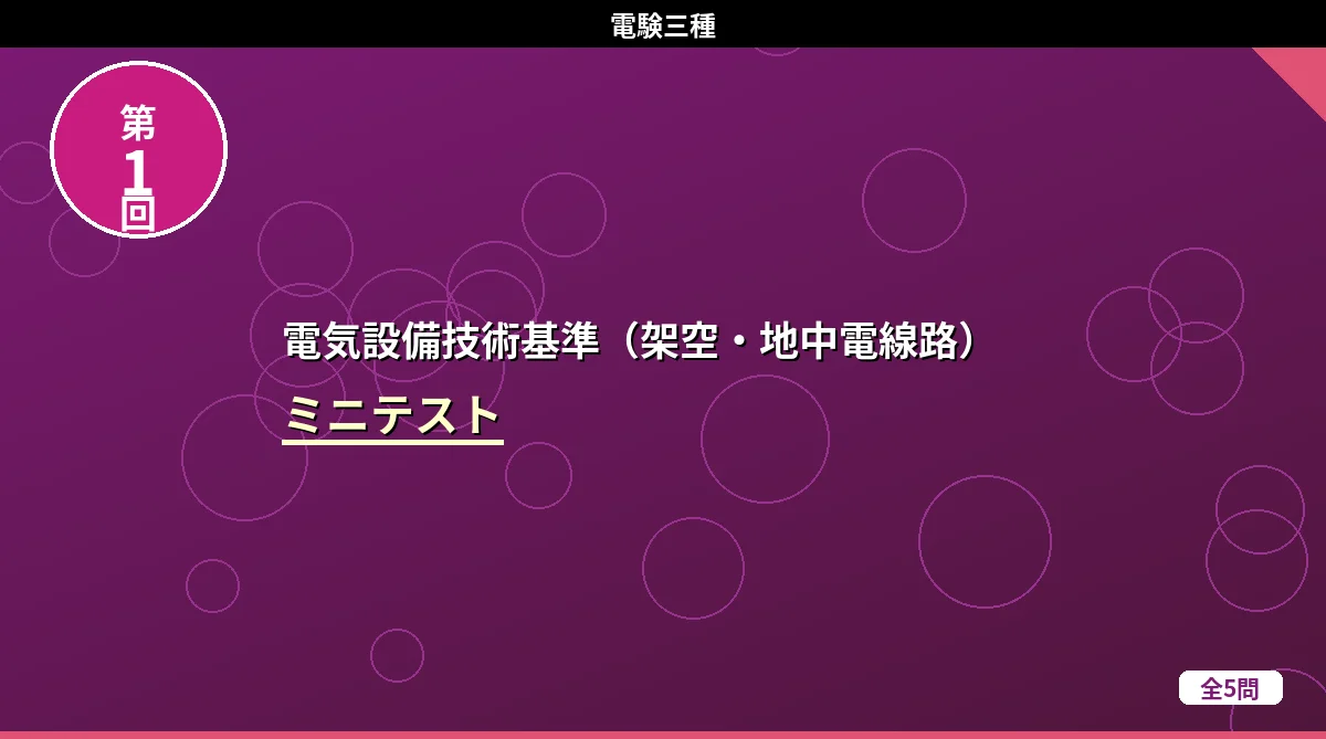 「電気設備技術基準(架空・地中電線路)」のミニテスト第1回(全5問)です。 電気設備技術基準(架空・地中電線路) ミニテスト 第1回 第2回 第3回 テストの使い方 まず自分で答えを考えてから「解答を見る」をタップしてください。間違えた問題は解説記事に戻って確認すると効果的です。 第1問 低圧架空電線が道路を横断する場合の地上からの最低高さはどれか。 (1)3m(2)4m(3)5m(4)6m(5)7m 解答を見る 正解:(3)5m低圧の道路横断は5m以上です。高圧の場合は6m。「低圧は高圧より1m低い」と ...