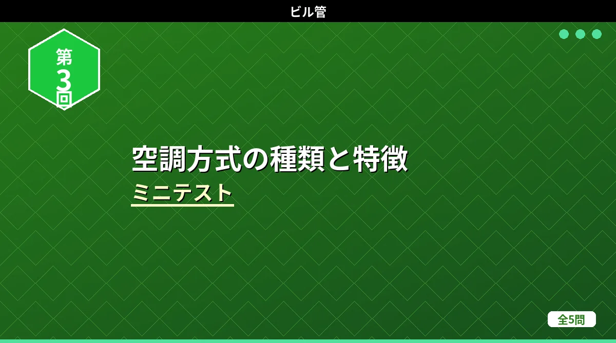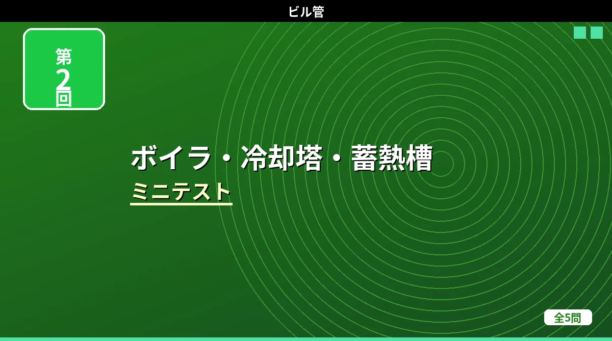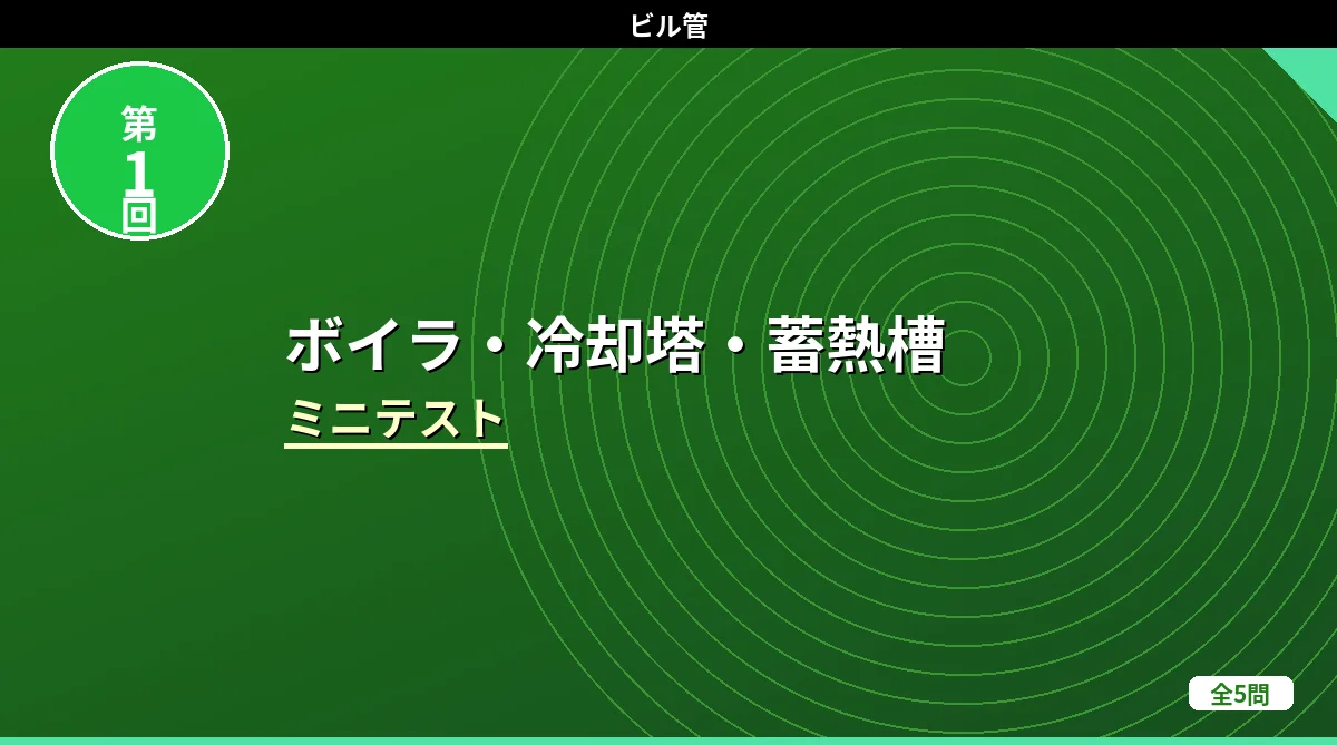 「ボイラ・冷却塔・蓄熱槽」の内容から出題するミニテスト第2回(全5問)です。レジオネラ対策やボイラの種類別特徴を確認しましょう。 ボイラ・冷却塔・蓄熱槽 ミニテスト 第1回 第2回 第3回 テストの使い方 まず自分で答えを考えてから「解答を見る」をタップしてください。間違えた問題は解説記事に戻って確認すると効果的です。 第1問 冷却塔のレジオネラ属菌対策として、誤っているものはどれか。 (1)殺菌剤(塩素系・非塩素系)を投入する(2)冷却塔の水槽や充填材を定期的に清掃する(3)ブロー(排水)で冷却水の一部 ...