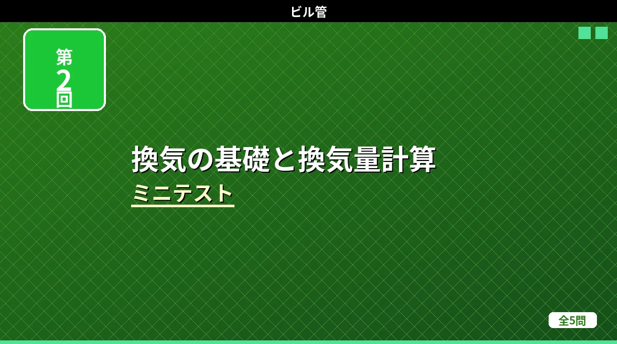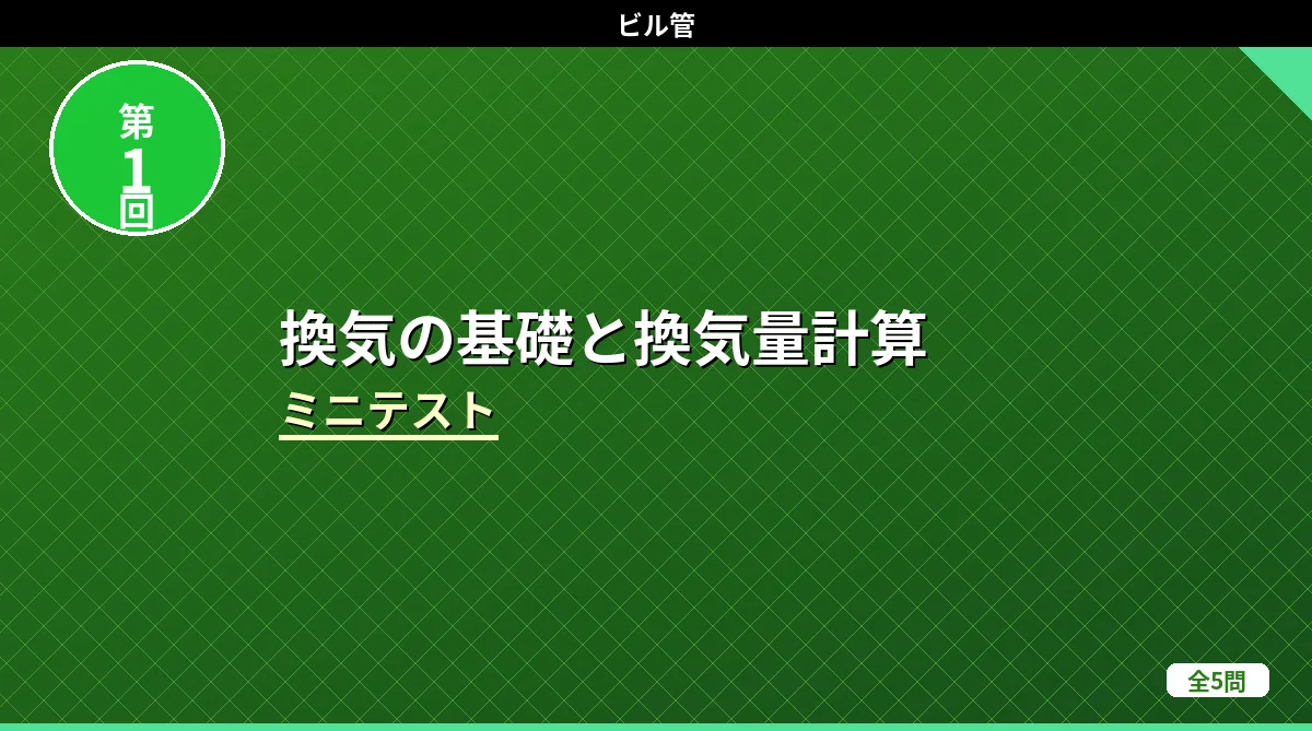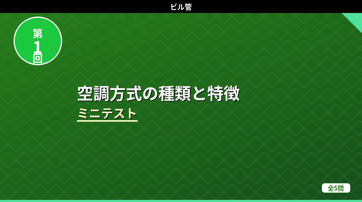 「空調方式の種類と特徴」の内容から出題するミニテスト第1回(全5問)です。中央方式と個別方式の違い、CAV・VAV・FCUの基本をチェックしましょう。 空調方式の種類と特徴 ミニテスト 第1回 第2回 第3回 テストの使い方 まず自分で答えを考えてから「解答を見る」をタップしてください。間違えた問題は解説記事に戻って確認すると効果的です。 第1問 中央方式(セントラル方式)の空調に関する記述として、正しいものはどれか。 (1)各室にパッケージエアコンを設置する方式である(2)ダクトが不要で設置が簡単である ...